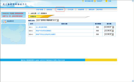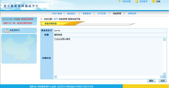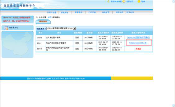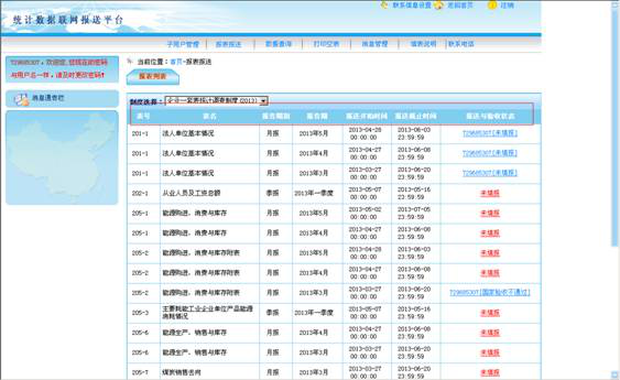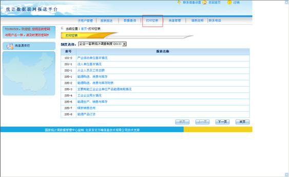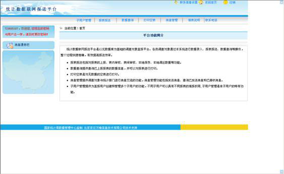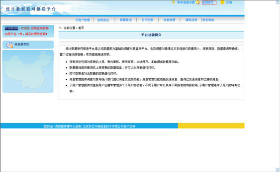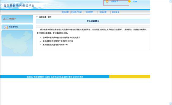 在统计数据联网报送平台的主页面右上角的位置,点击“返回首页”链接,页面会显示统计数据联网报送平台首页内容,如下图所示: