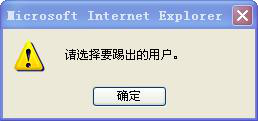 不选中在线用户,点击“踢出用户”按钮,提示需要选中要踢出的用户,如下图所示: