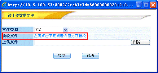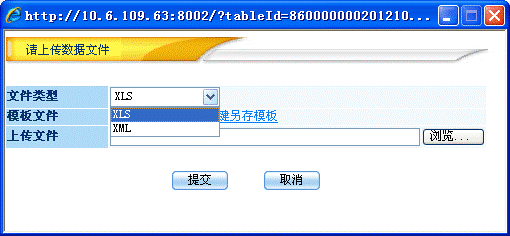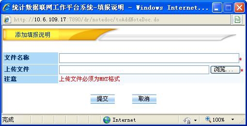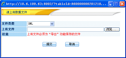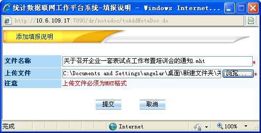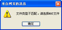 图8.3-3中,如果选择文件格式不是MHT格式,点击“提交”,系统会提示:文件类型不匹配,请选择MHT文件,如下图所示:
