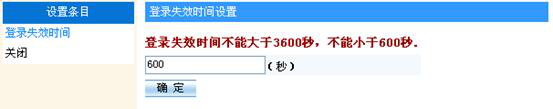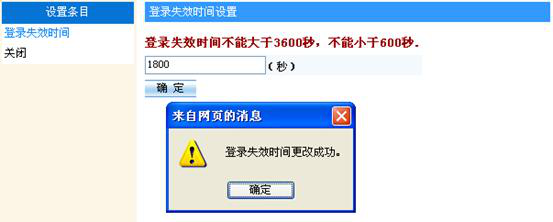 按照要求输入登陆失效时间,点击“确定”提示设置成功,如图9.4-3所示:
