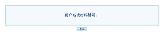 点击“登录”按钮时,校验登录名、密码或验证码,如果有一项为空或错误,则提示错误,不能登录,若输入用户名密码错误,则如下图所示: