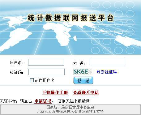 注意事项:企业登录的用户名和密码,必须在数据处理软件中的“调查对象管理-直报用户管理”模块中进行创建,然后企业才能使用创建的用户名和密码进行登录。