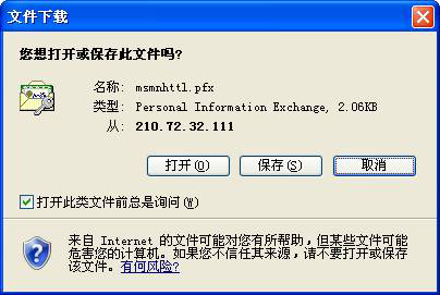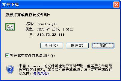 首次进入应用系统CA的计算机需先下载根证书,点击“下载根证书”链接,弹出文件下载页面,如图1.2-3所示: