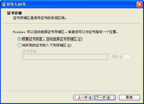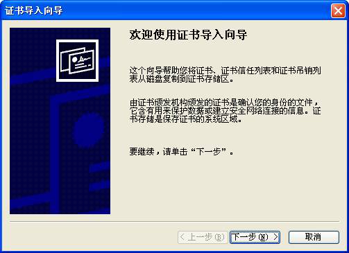 选中“安装证书”,弹出证书导入向导,如下图所示: