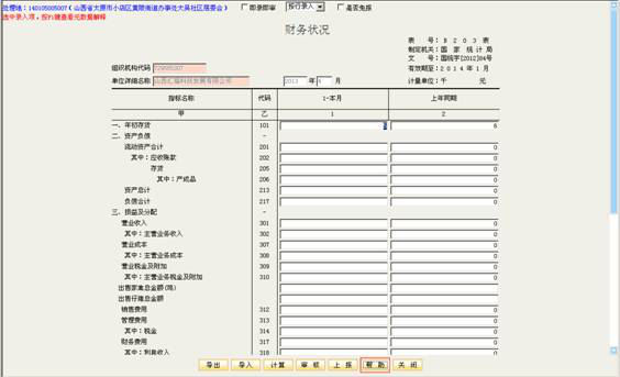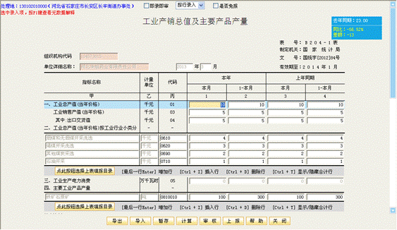上期有数的主栏本期底色突出显示…………………………………………2.2.1数据表的录入